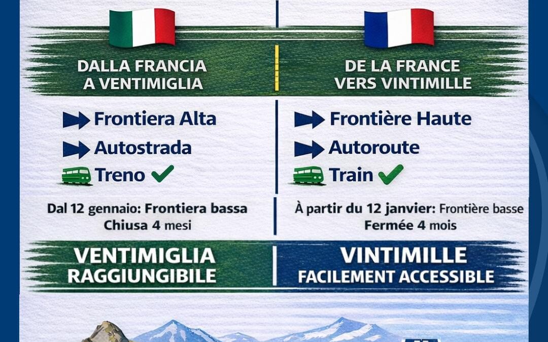 La Confcommercio si è attivata fin dal dicembre scorso per le modifiche alla viabilità legate ai lavori al valico di frontiera di Ponte San Ludovico, a Ventimiglia. I lavori riguarderanno inizialmente piazzale De Gasperi, poi le gallerie “Balzi Rossi” e “Dogana” e infine la rotatoria di Latte. Nel corso di una riunione a Genova con i vertici Anas era stata accolta l’istanza di Confcommercio di posticipare l’intervento dopo le festività natalizie.